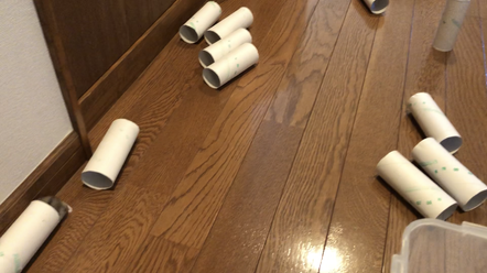 トイレットペーパーの芯のトンネルだらけ。