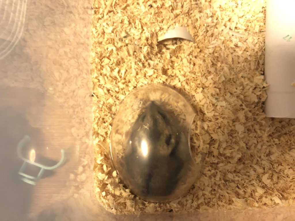 おもちがふざけてる間にハムちゃんの寝床作るんで巣の交換作業。
